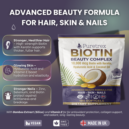 Biotin Beauty Complex 10,000µg with Keratin, Hyaluronic Acid, Bamboo Extract & Coconut Oil