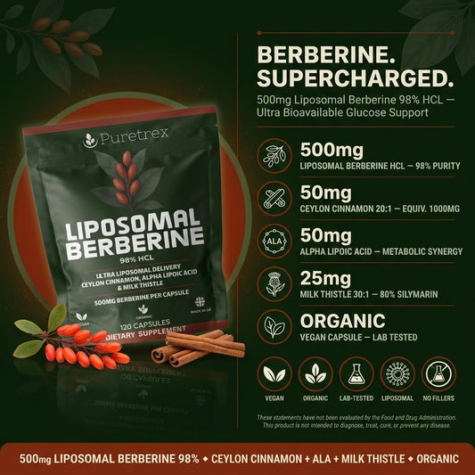 Liposomal Berberine 500mg – Ceylon Cinnamon, ALA & Milk Thistle