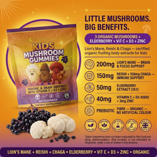 Kids Mushroom Gummies – Immune & Brain Support with Vitamin C, D3 & Zinc