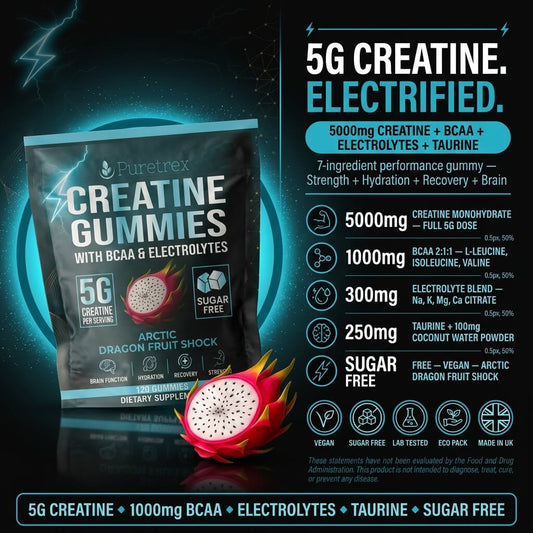 Creatine Gummies 5g + BCAA & Electrolytes – Arctic Dragon Fruit Shock
